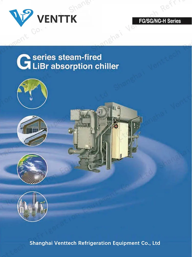 Steam fire libr absorption chiller is a type of refrigeration equipment powered by steam heat. LiBrsolution is used as the circulating working fluid, in which the LiBr solution is used as the absorbent and water is the refrigerant, Unit is main composed of the H'TG, LTG, condenser,evaporator, absorber, high temperature HX, low temp.HX, condensate water HX, auto purge device, vacuum pump, canned pumpetc.